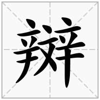 2、辬字的总笔画为:18画。部首是:辛部,部首笔画:7划,部首外笔画:11画。