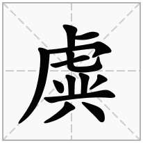 2、虡字的部首是虍,虡字的结构为:左上包围结构,虡字笔划顺序是:竖、横、横撇/横钩、撇、横、竖弯钩、竖、竖、点、撇、横、撇、点。