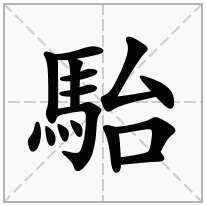 2、駘字的部首是馬,駘字的结构为:左右结构,駘字笔划顺序是:横、竖、横、横、竖、横折钩、点、点、点、点、撇折、点、竖、横折、横。