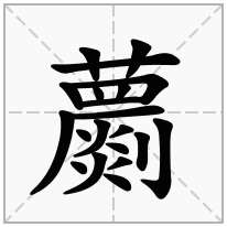 2、蘮字的部首是艹,蘮字的结构为:上下结构,蘮字笔划顺序是:横、竖、竖、竖、横折、竖、竖、横、横、撇、点、撇、撇、点、点、撇、撇、点、竖、竖钩。