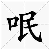 2、呡字的部首是口,呡字的结构为:左右结构,呡字笔划顺序是:竖、横折、横、横折、横、竖提、横、斜钩。