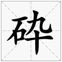 2、砕字的部首是石,砕字的结构为:左右结构,砕字笔划顺序是:横、撇、竖、横折、横、撇、横折弯钩/横斜钩、横、竖。